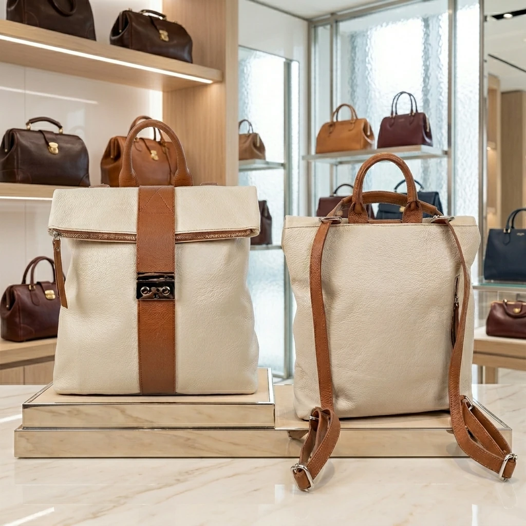 Elba Stijlvolle Rugtas & Handtas – Beige Echt Leer