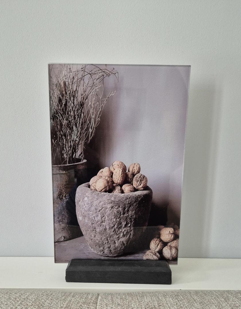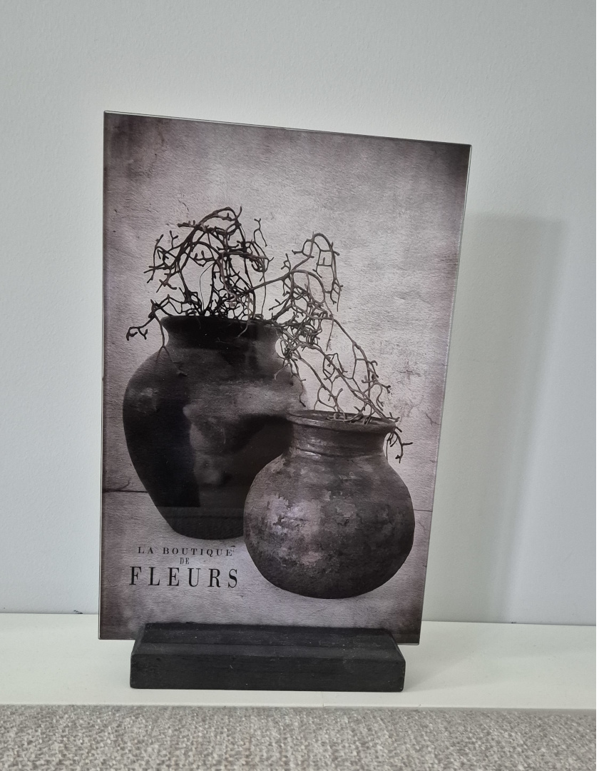 Stijlvolle afbeeldingen op glas. Je ontvangt de afbeelding inclusief houder, aan de achterzijde is ook een ophangsysteem voor bevestiging aan de wand.