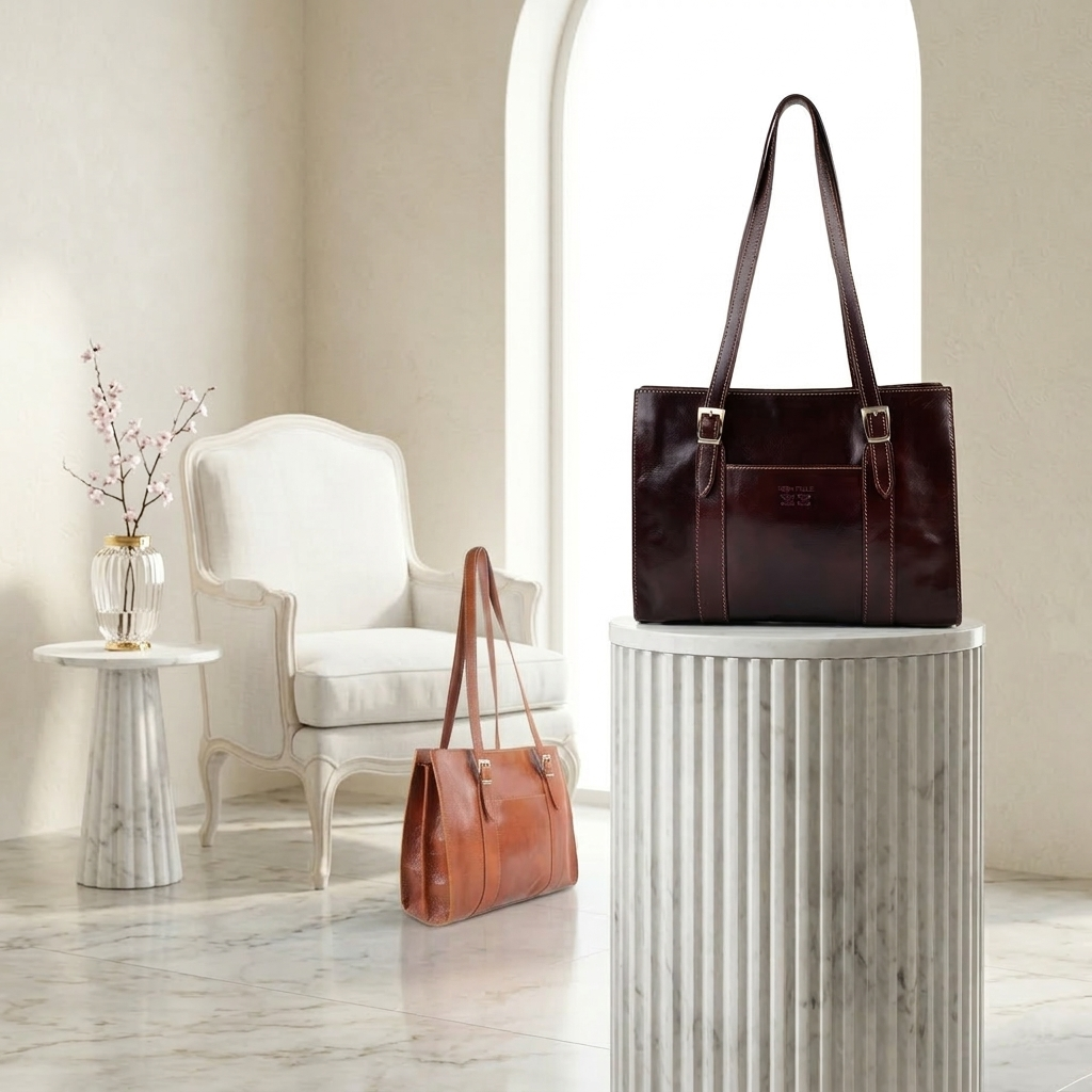 Stijlvolle lederen Schoudertas Genua met rits – Italiaanse elegantie