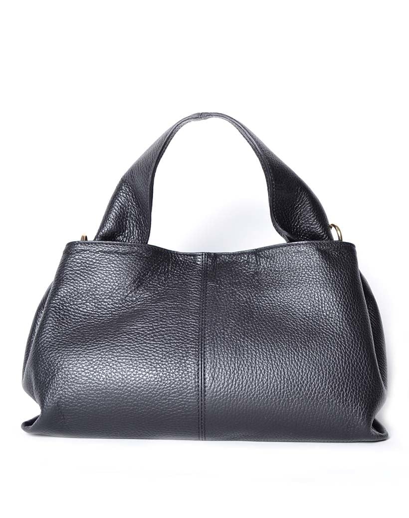 Trendy en tijdloze echt lederen handtas in zwart met een schouderband.